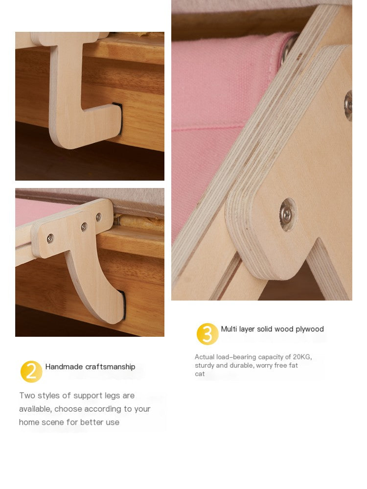 Crafted from high-quality wood, this hammock offers durability and stability. The unique thickened design ensures your kitty feels secure while lounging. Available in various attractive colors such as Ash Powder, Gray Yellow, Gray Blue, and more, you can choose the one that best fits your home décor.