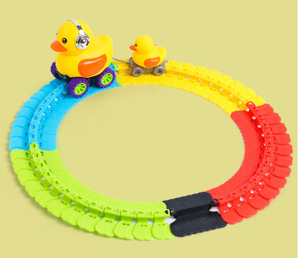 Color: 96 Track 1 dinosaur car 2 small trailers 4 hooks, 144 Track 1 dinosaur car 4 small trailers 6 hooks, 192 Track 2 Dinosaur Cars 4 small trailers 6 hooks, 96 track pieces big yellow duck 2 small trailers 4 hooks, 144 Track 1 big yellow duck 4 small trailers 6 hooks, 192 Track 2 big yellow duck 4 small trailers 6 hooks, dinosaur car [1]],[2] Dinosaur trailer, big yellow duck [1],[2] Yellow Duck small trailer, 24 tracks [1 pack], a set of bracket