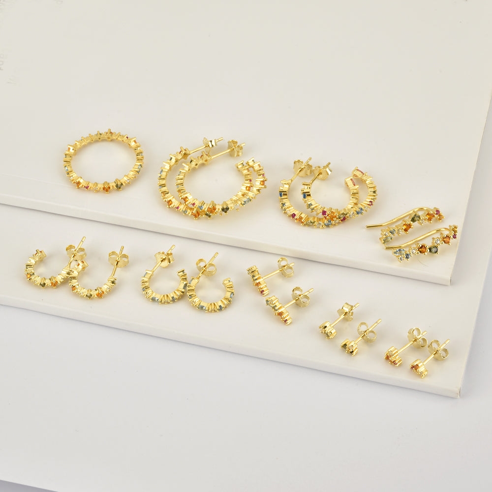 Introducing our Circle Earring Round Piercing! These beautiful earrings are crafted with gold rainbow zircon cz and make a perfect addition to any outfit. They are also great for everyday wear and will add a touch of elegance to any look. Whether you're dressing up for a special occasion or just accenting your everyday style, these earrings are a must-have.
