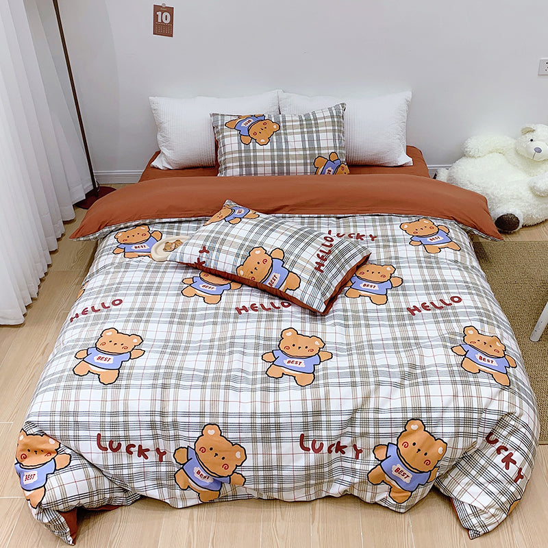 Cotton Four-piece Set Girl Heart Cartoon Pure Cotton Linen Duvet Cover Bed
