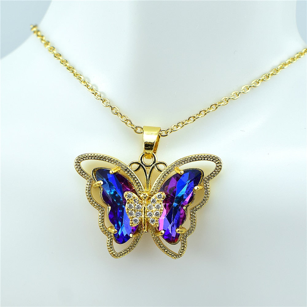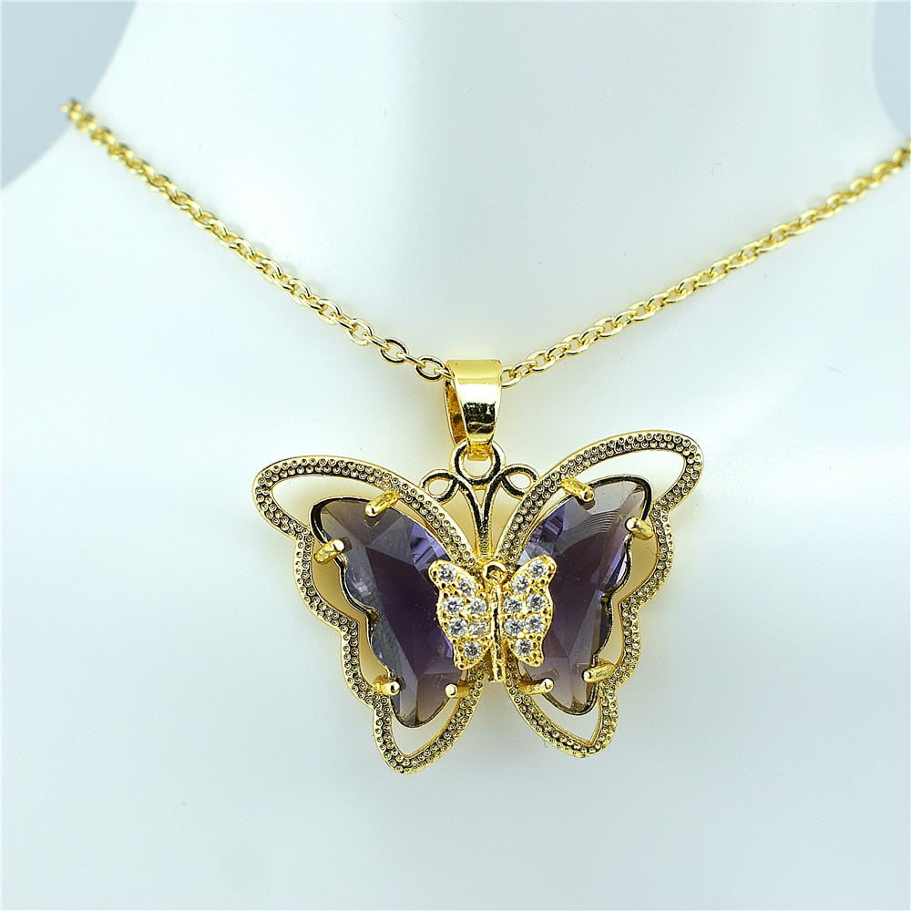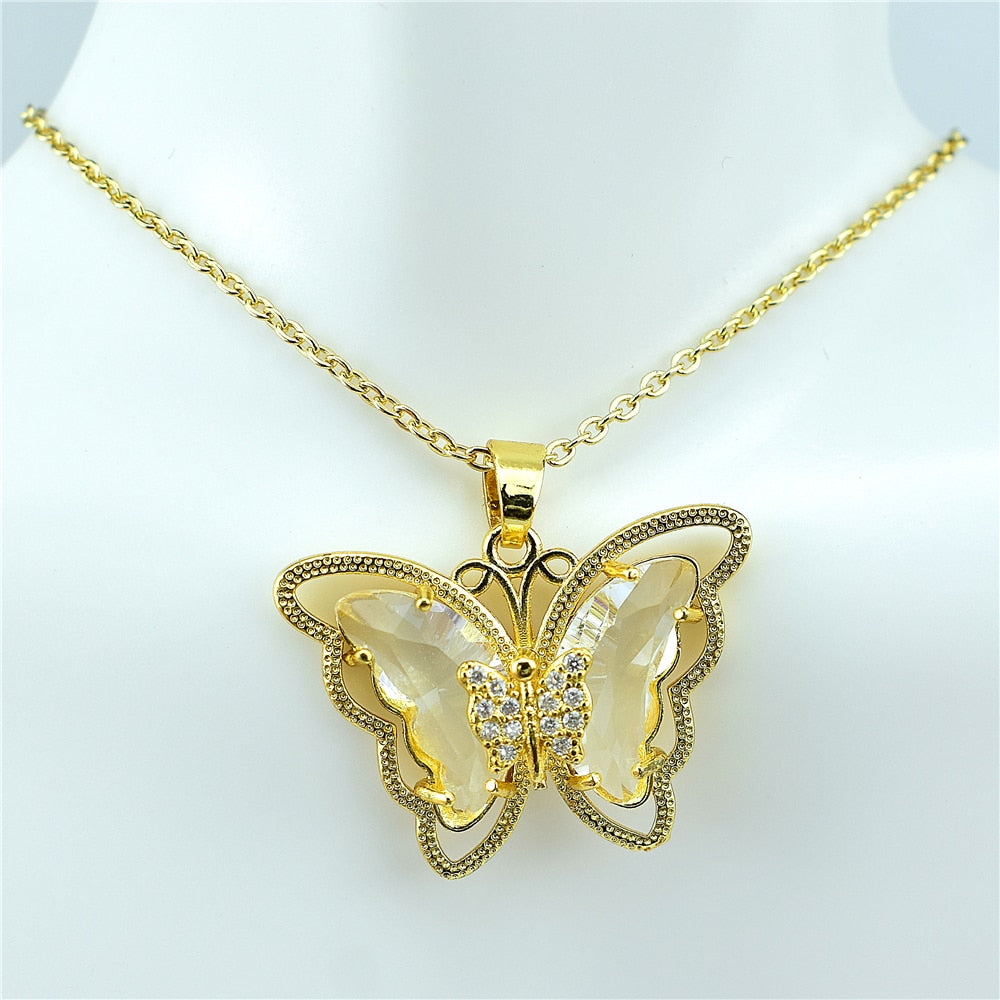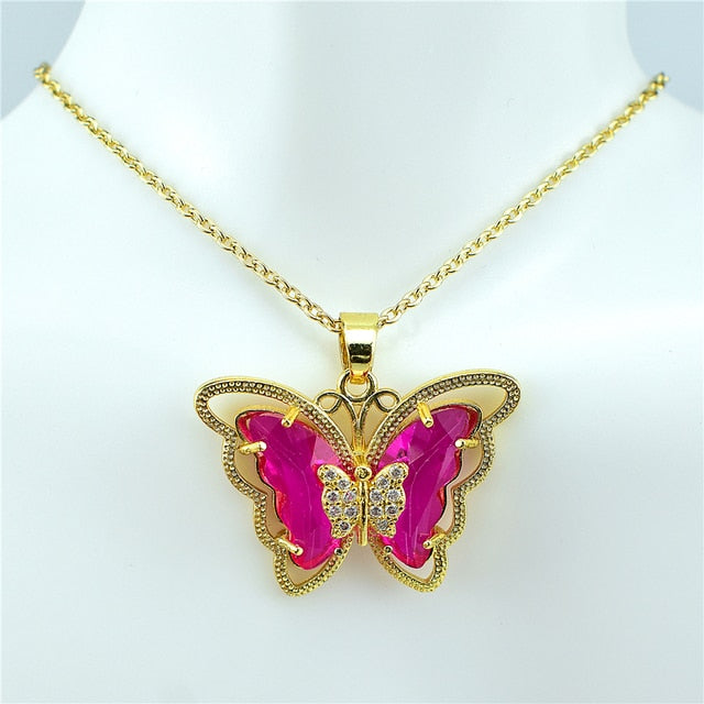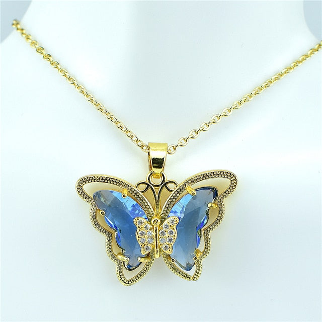 Crystal Glass Butterfly Necklace