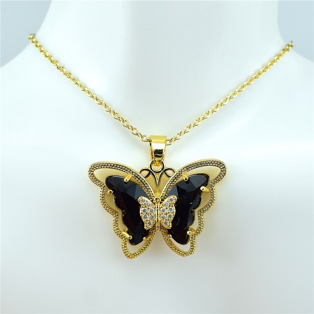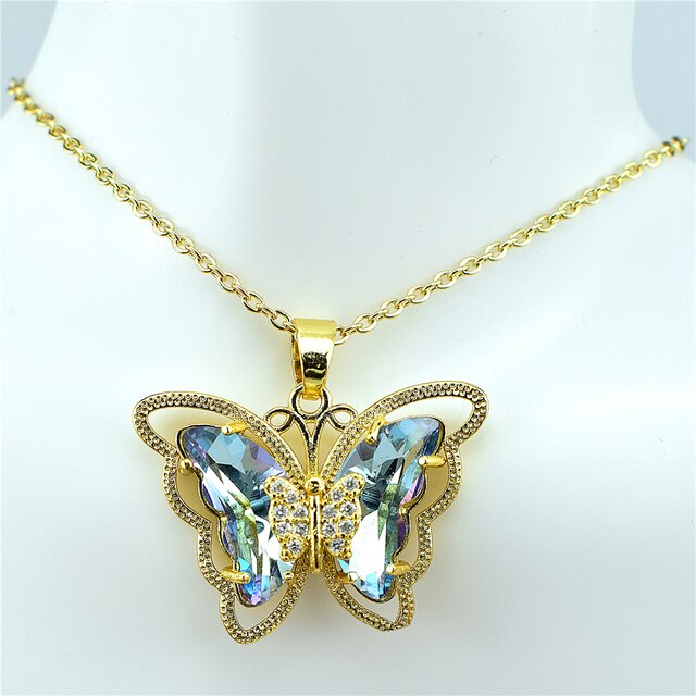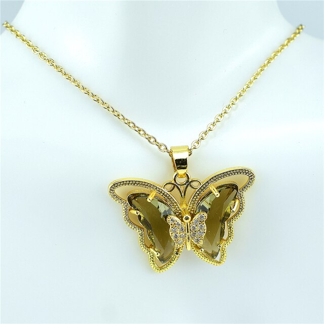 Give your look a delicate and stylish touch with our Crystal Glass Butterfly Necklace. Handcrafted from crystal glass, this necklace features a unique butterfly pendant with sparkling details that will elevate any outfit. The graceful curves of the O-word chain form an elegant silhouette that can be worn day or night. Easily dress up a casual look or give office attire an added touch of glamour. Whether you want to make a statement in a special occasion or add something special to an everyday look, this necklace comfortably pairs with everything. Get ready for compliments wherever you go! Our Crystal Glass Butterfly Necklace is sure to be the timeless accessory your wardrobe needs.