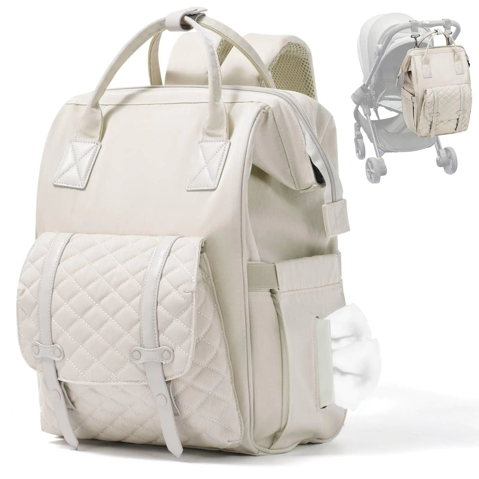 Diaper Bag Baby Travle Essentials Backpack for Dad Boy Girls MomLarge Capacity Waterproof Tote Newborn Essentials Diper Bag Backpack with Changing Pad Stroller Straps and USB Charging PortBeige