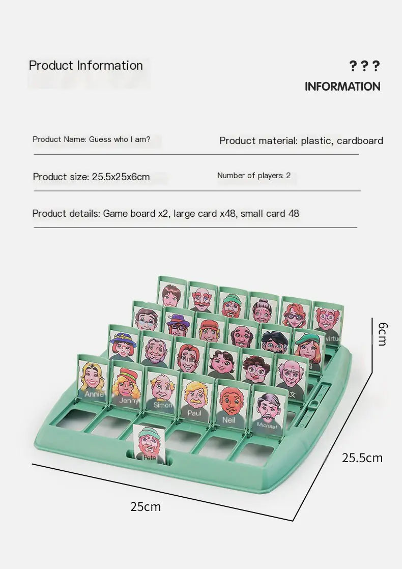 Join in on the fun and enrich your child's playtime with the Guess Who I Am game – where every guess brings excitement and every moment is filled with learning!