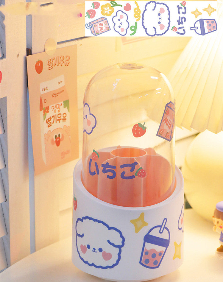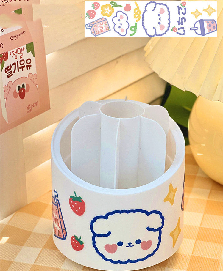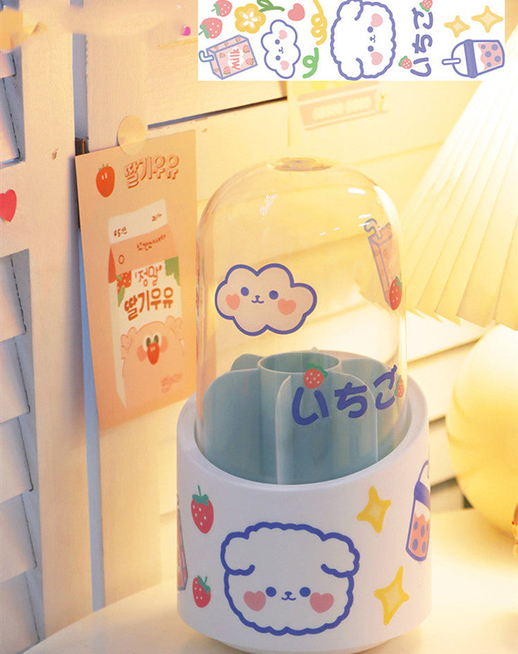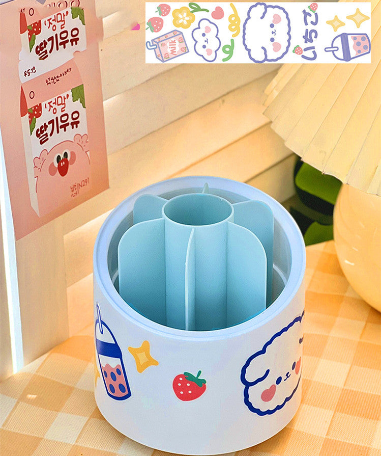 Large-capacity Cute Desktop Dust-proof Makeup Brush Storage Rotating Pen Holder