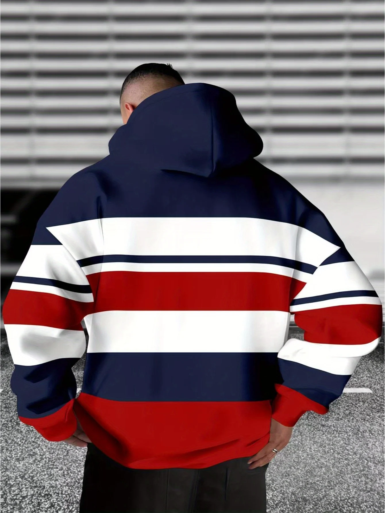 Men's 3D Printed Hooded Sweatshirt with Color Block and Striped Printing Simple and Casual Sportswear Modern Street Style