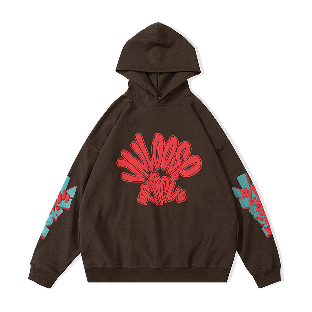 Men's American High Street Alphabet Print Hooded Sweatshirt