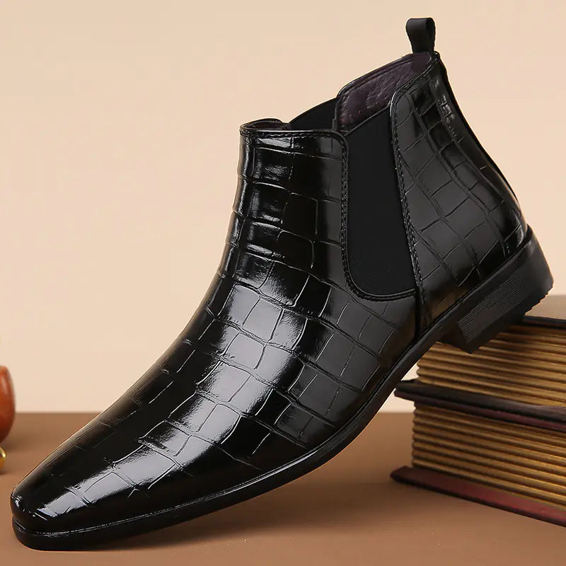 Step up your style game with our Chelsea Boots, crafted for the modern man. These high-top leather shoes are designed to elevate your look, whether you're heading to the office or out for a night on the town. With a sleek, glossy finish, they exude sophistication and charm.