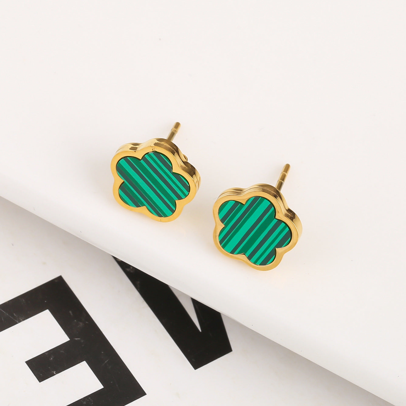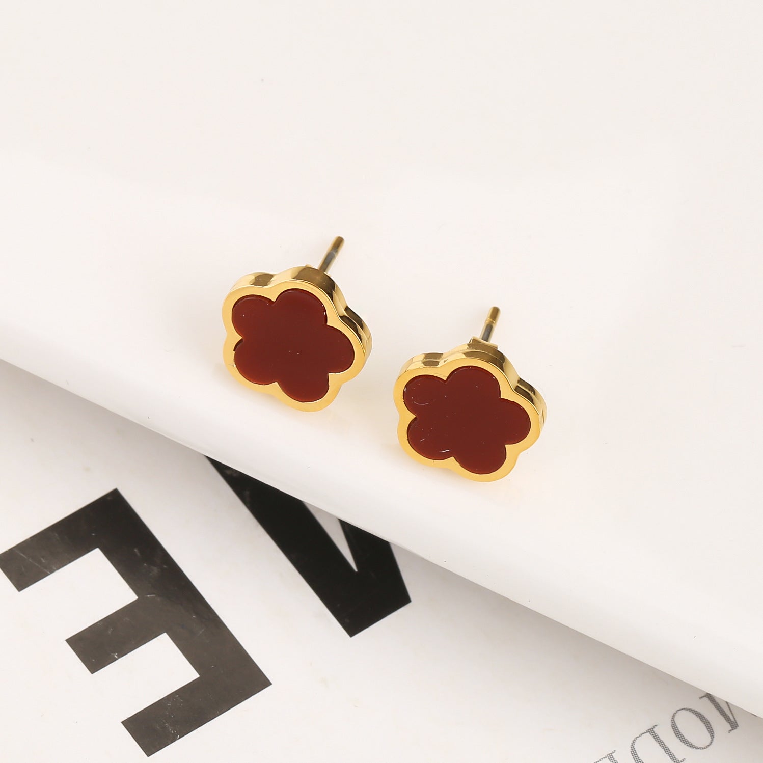 New Stainless Steel Plant Fritillary Five Leaf Petals Earring Bracelet Necklace Jewelry Set Women Cross-border Hot Selling Lot