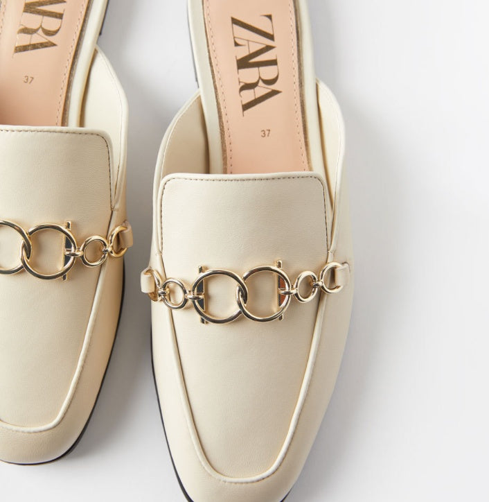 Nude Sheep Leather Half Slippers Women Toe Flat Shoes Women