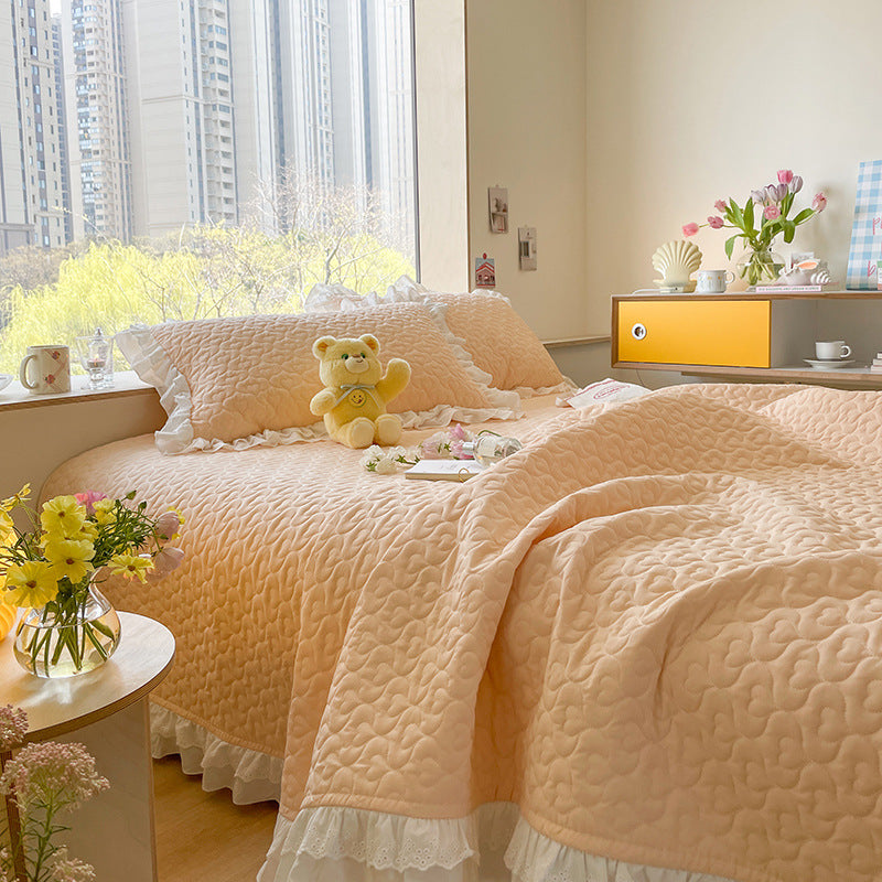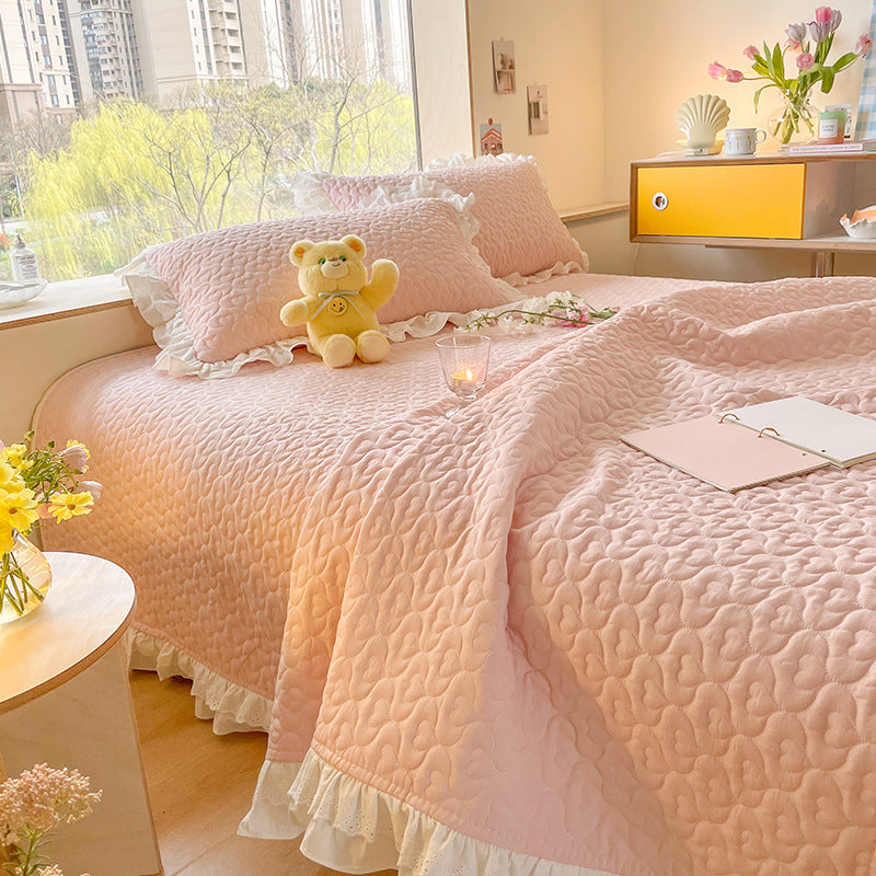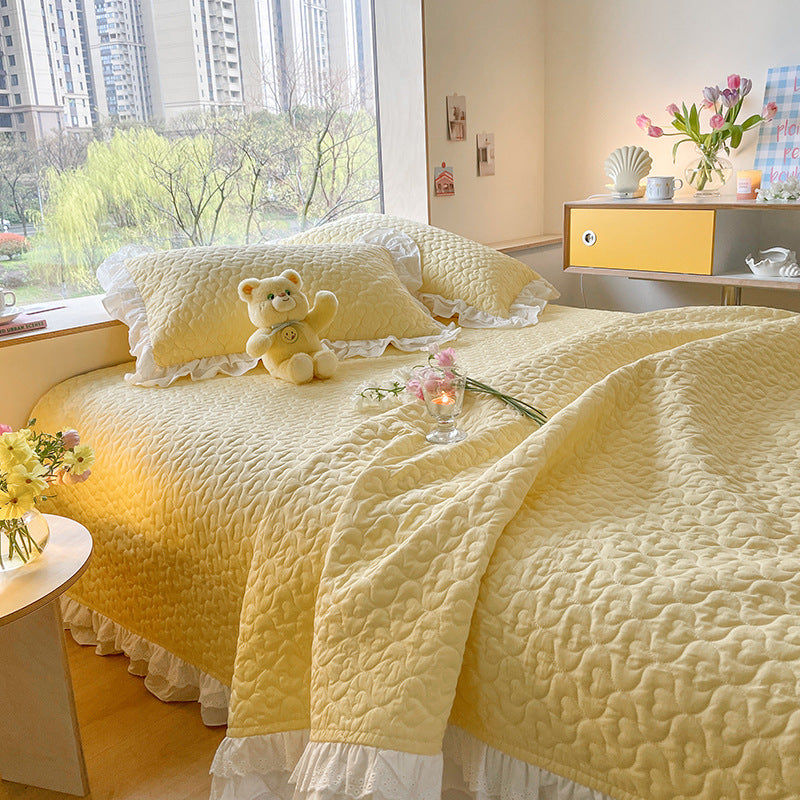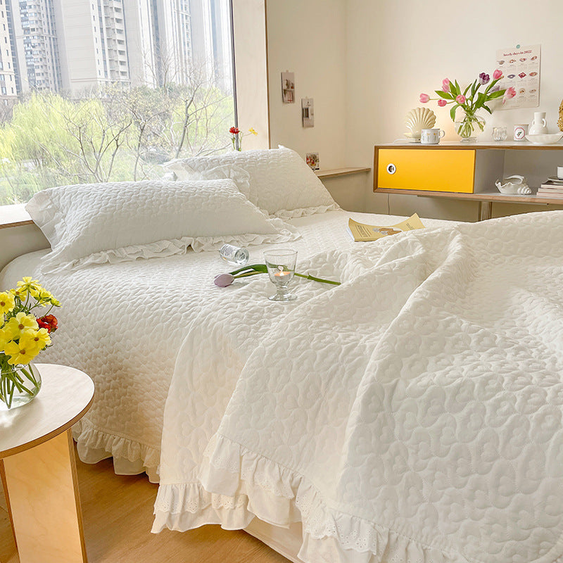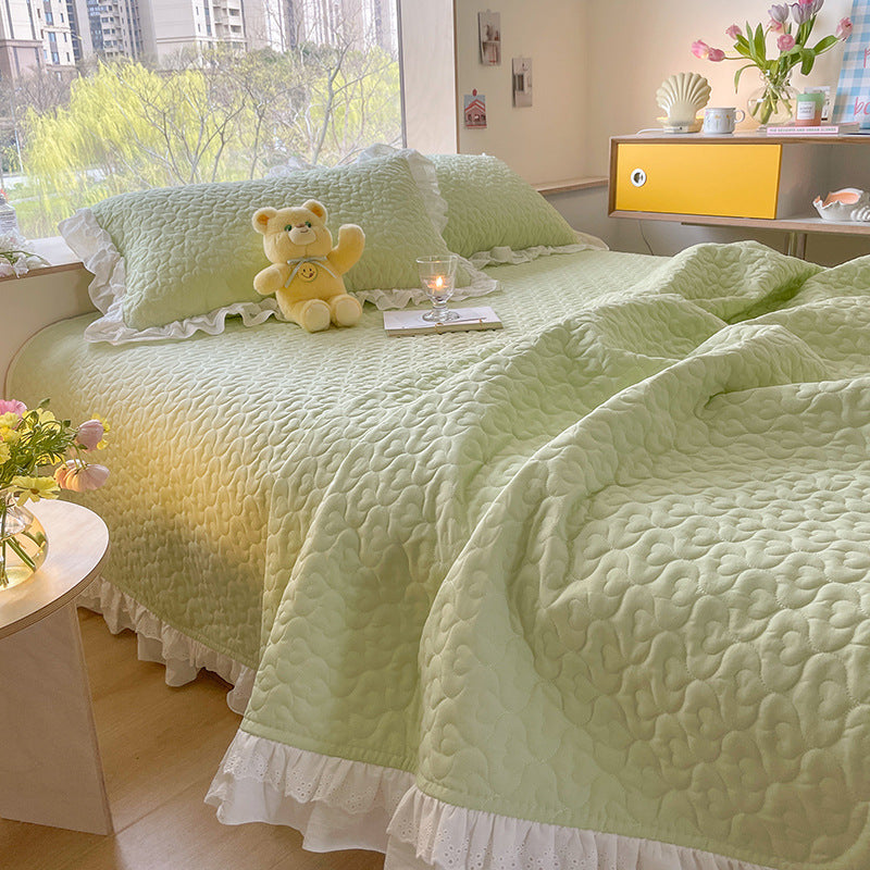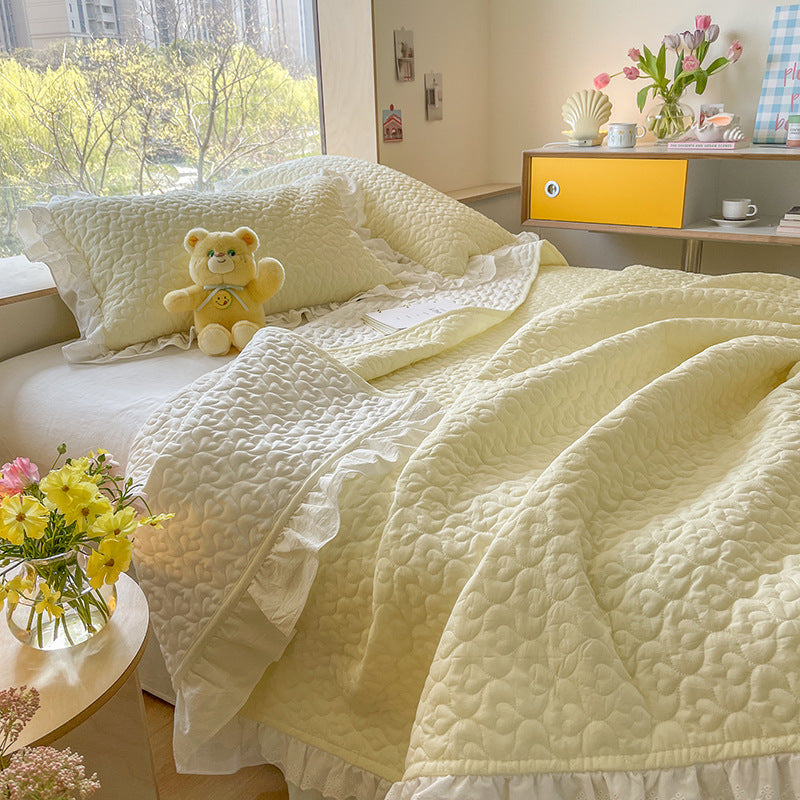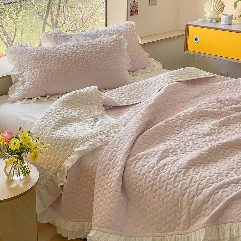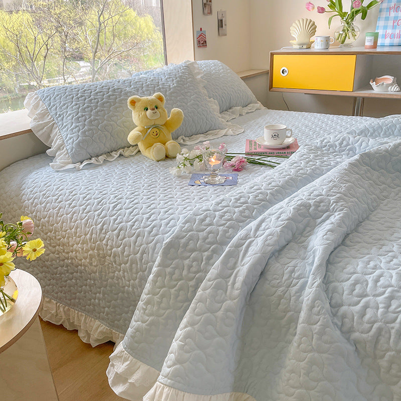 Pure Cotton Solid Color Washed Quilted Quilt Bed Cover Three Piece Set
