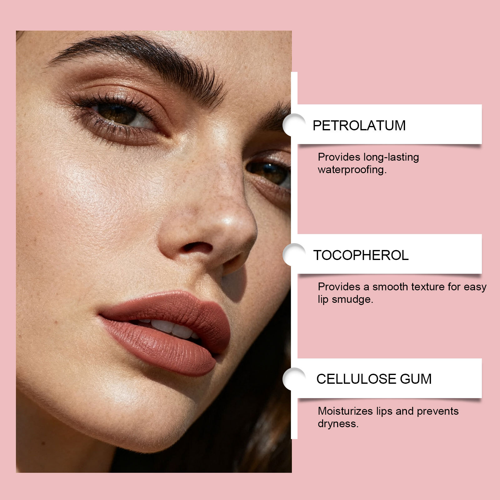 Ingredients: lip liner: modified corn starch, carbon powder, cellulose gum, polyvinylpyrrolidone, water, tocopherol (vitamin E), sodium benzoate, CI 77491.