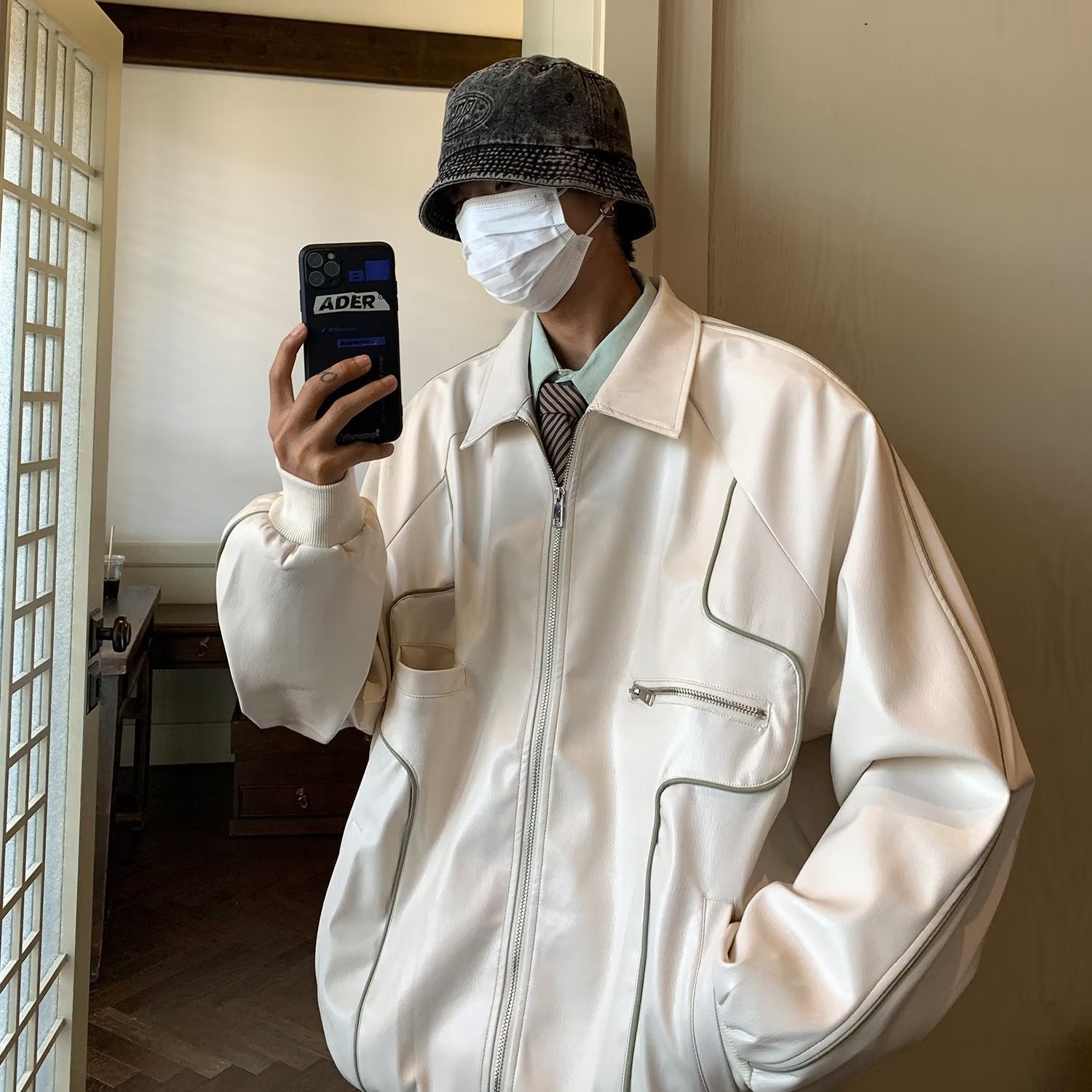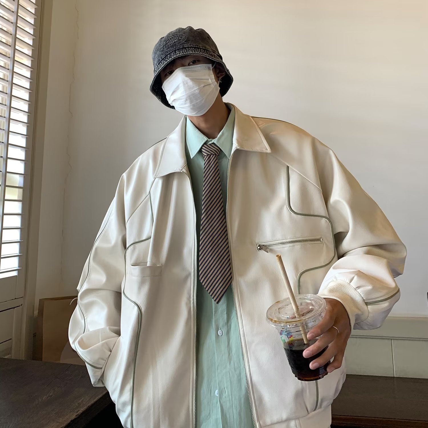 Retro Solid PU Leather Lapel Jackets For Men And Women