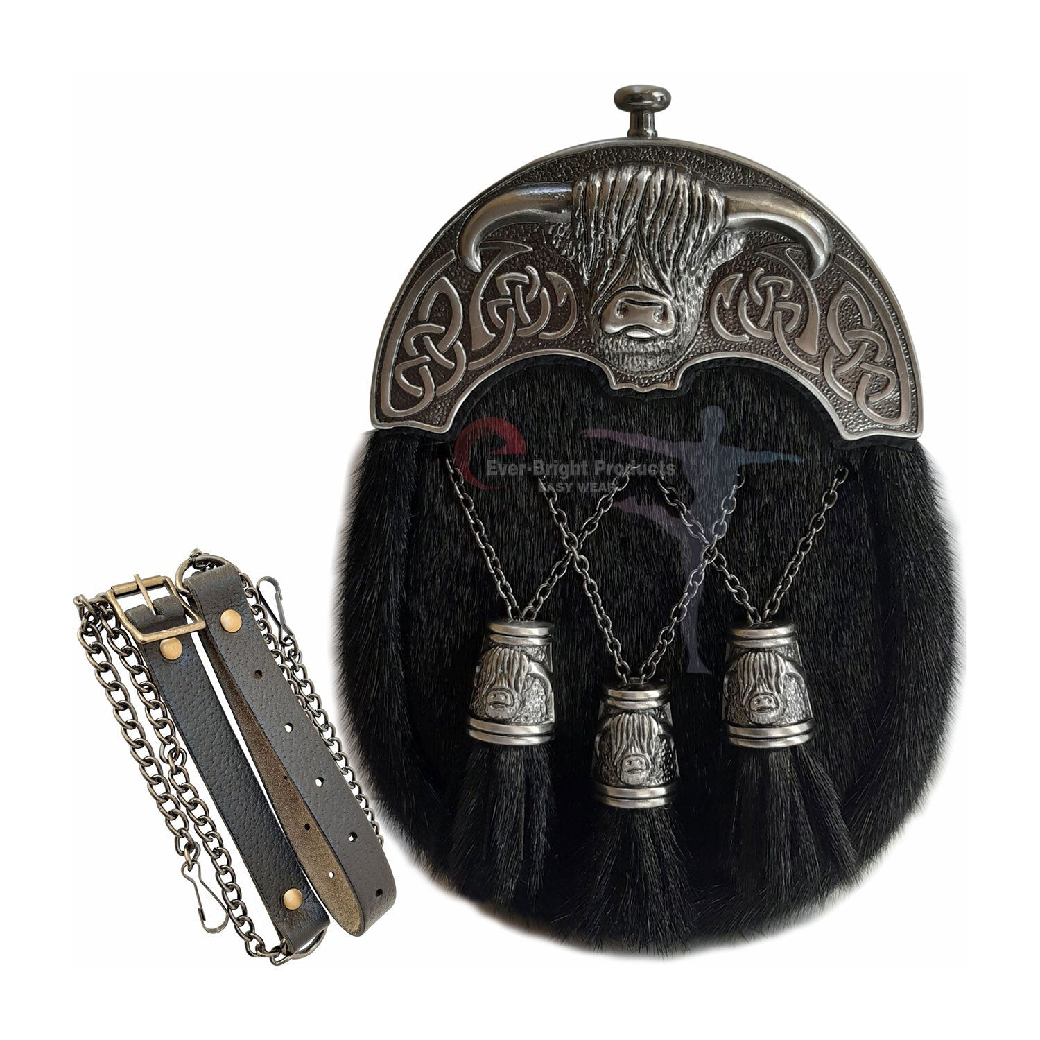 Scottish Kilt Full Dress Sporran Buffalo Seal Skin Cantel Sporran Antique Unique Buffalo.460