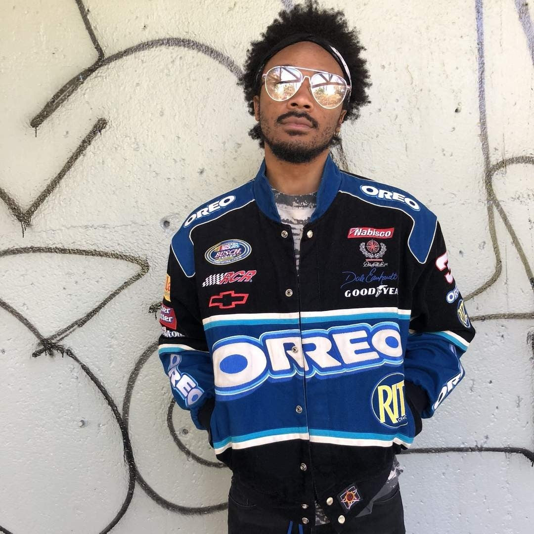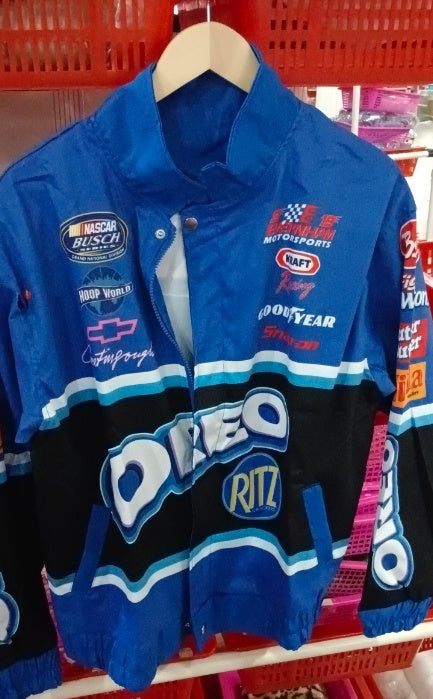 Sporty Blue Printed Casual Loose Long Sleeve Windbreaker Jacket