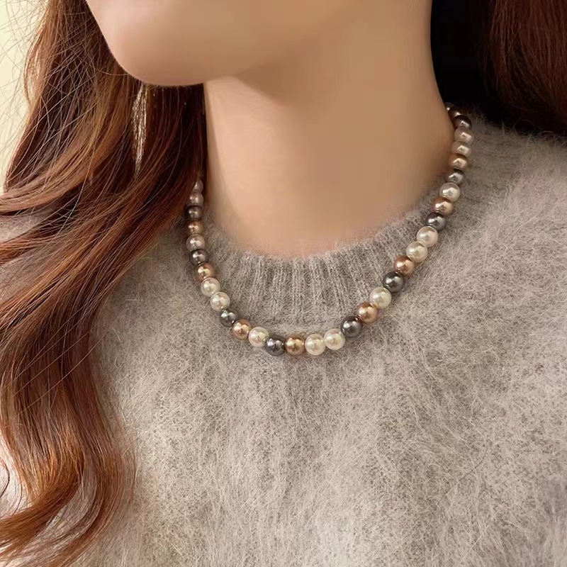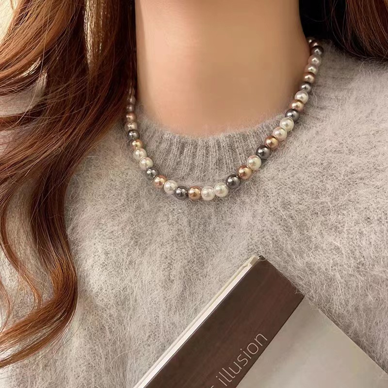 Womens Mixed-Color Glass Pearl Necklace Jewelry