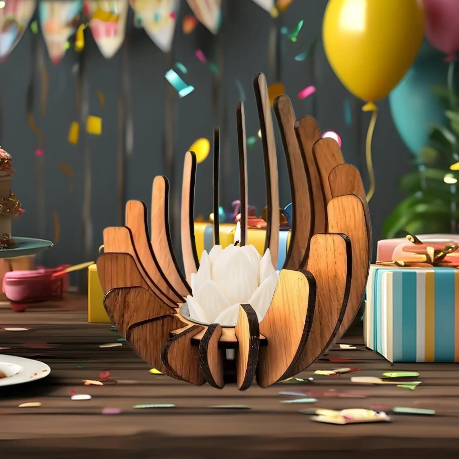 Wooden Candle Holder Lotus-Shaped Candle Holder Wooden Creative Candlestick without Candles DIY Wooden Candle Holder Decoration