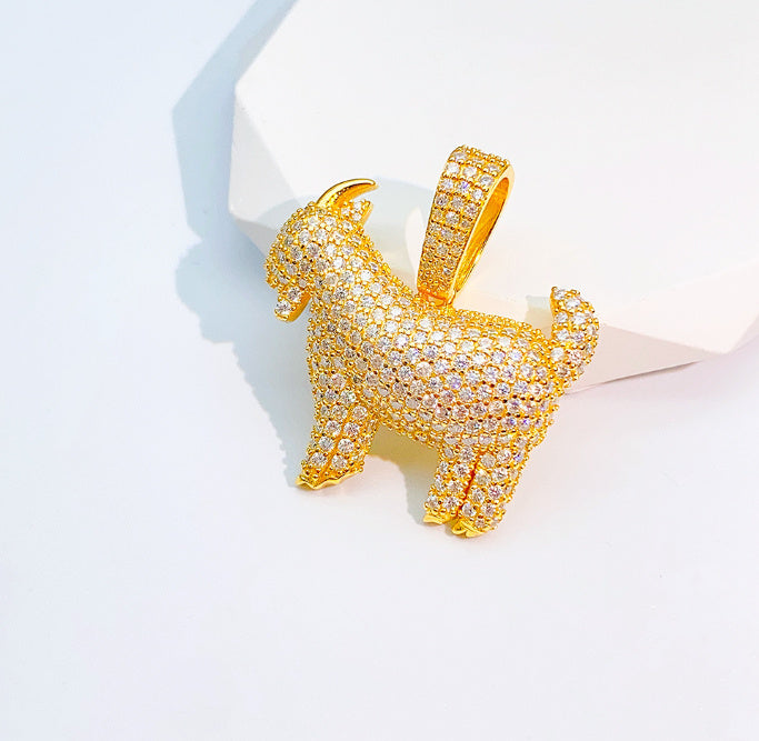 Zodiac Lamb Pendant S925 Silver Inlay Moissanite